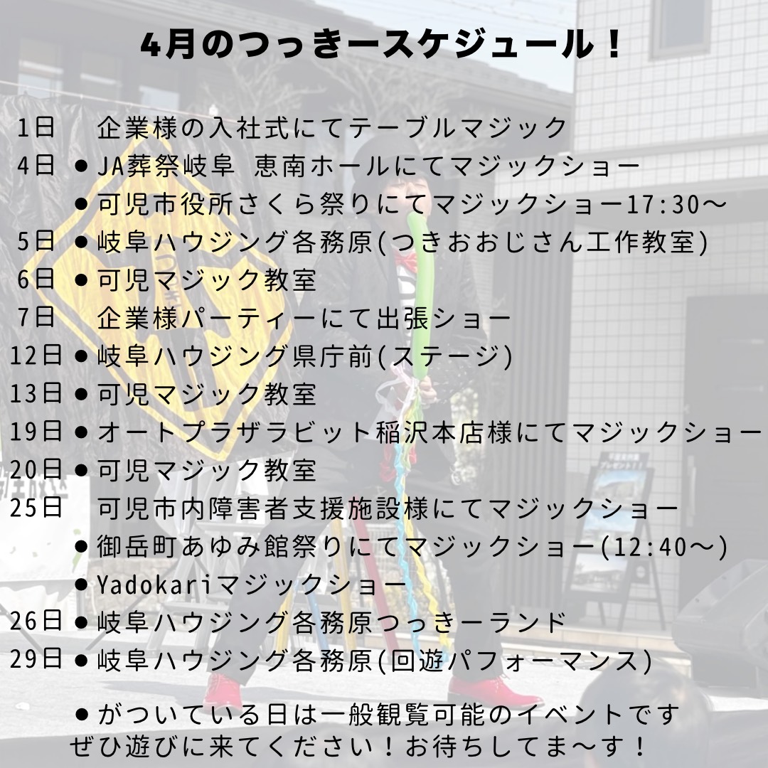 マジシャン・つっきーは岐阜ハウジングギャラリー様の専属マジシャンとして、『マイつっきーマジックショー』にレギュラー出演をしているほか、『個室居酒屋 迦具夜』様にて週末(不定期)19:00~23:00の時間帯でマジックを披露しております。