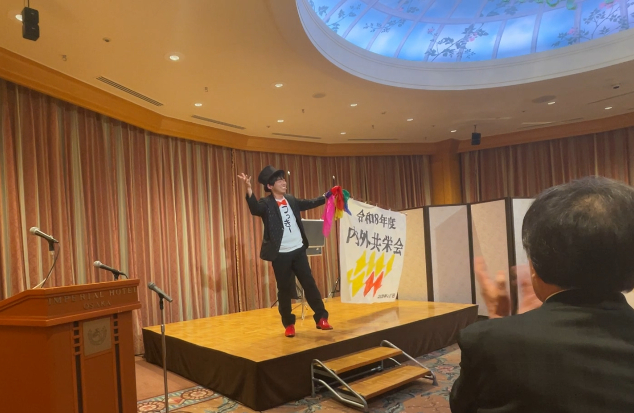 つっきーの地元可児に工場がある企業様で、可児工場の忘年会でご好評いただき、本社+協力会社様の懇親会にも呼んでいただく運びとなりました。場所はなんと大阪の帝国ホテル!ちょっと緊張しました😅